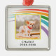 Colourful pet memorial photo ornament with a rainbow. Personalise this sympathy keepsake with the pet's name and years.