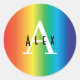Modern Rainbow Pride Monogram Name + Initial Classic Round Sticker