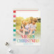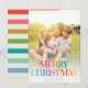 Modern Holiday Card reading MERRY CHRISTMAS in a trendy bright rainbow typography design with your favourite family photo framed with a yellow half ray of sun.