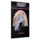Elevate your stationery with our rainbow unicorn clipboard, designed to add a splash of magic to your daily tasks! Featuring a whimsical rainbow and unicorn design, this clipboard is both functional and charming. Perfect for keeping your papers organised in style, whether at school, work, or home. Embrace the enchantment and personalise it with your name for an extra special touch.