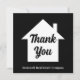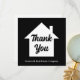 Chic real estate company thank you cards in modern black and white. Customise with your realty business under the simple house for a home buying client or professional realtor.