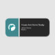 Modern real estate theme name tags template designed with a house symbol, teal white and black designer color combination and simple layout you can customize online for a Realtor, Broker, or home services.