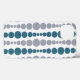 This phone case has a mid-century modern design of teal and grey rounded rectangles in increasing and decreasing size running vertically on a field of white.