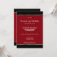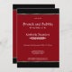 A modern simple red, black and white brunch and bubbly bridal shower invitation with gold and silver trim stripes.