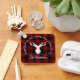 The product design features a silhouette of a deer on a classic red and black buffalo plaid pattern. Combined with your own personalized text, this composition makes rustic, modern, and unique keychains for family reunion, Christmas, and any other special occasions.