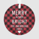 Photo ornament design for the holidays features your favorite image with year text in white (can be customized) with red and black buffalo plaid pattern on the back. Personalize the custom "Merry and Bright" family monogram name & year text on the back or remove. Photo tip: crop photo to square format before uploading it to the design template. Photo credit: Two Fish Photography www.twofishphoto.com