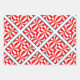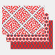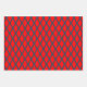 Modern Red and Blue Geometric Pattern wrapping paper featuring red awning abstract, dots and diamond shaped mesh pattern.
