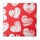 Modern Red and White Doodled Heart Valentine's Day Tile