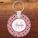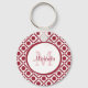 Modern Red and White Geometric Monogram and Name Key Ring