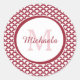 Modern Red and White Scallops Monogram and Name Classic Round Sticker