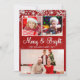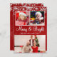Modern Red And White Snowflake Custom Three Photos Holiday Card