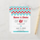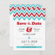 Modern Red Aqua Chevron & Lovebirds Save the Date Announcement Postcard