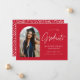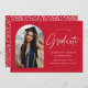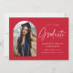Trendy graduation announcement featuring the graduate's photo framed by a red arch with "Graduate" in a white handwritten script. Personalise the front of the arch graduation announcement card by adding the graduate's name, graduation year, school name, and future plans. The photo graduation announcement reverses to display a red and white dotted pattern. The announcement is suitable for both high school and college graduates.