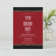 A modern sophisticated red and black 21st birthday invitation with white text and gold and silver trim stripes.