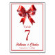 Modern Red Bow Ribbon Wedding Table Number