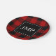 Modern Red Buffalo Plaid Personal Initial Paper Plate
