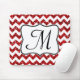 Modern Red Glitter Chevron Zig Zag Stripe Fabric Print Pattern Monogram Initial Mouse Pad Personalised