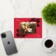 Modern Red Christmas Gold Botanical Photo Frame Foil Holiday Card