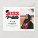 Modern Red Elegant Script Photo Graduation Announcement Postcard