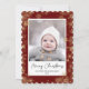Send customisable and personalised holiday greetings to friends, colleagues and family in simple, minimalist, elegant, fun, festive and modern photo cards! A beautiful frame of variety of gold winter snowflakes on maroon red background surrounds your photo on round scallop edge paper. The greeting " Merry Christmas " is written in elegant calligraphy, and below features your custom greeting message from your family name in modern typography. Reverse to reveal a beautiful the full gold winter snowflakes on maroon red pattern background.