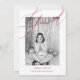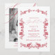 Celebrate your graduate with this modern and elegant graduation photo announcement card. Featuring a bold red script overlay on a black and white photo, paired with a delicate vintage floral frame, this design creates a striking editorial-style look.