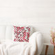 This colourful geometric throw pillow features a metaball pattern in white, red, and burgundy. The colours are fully customisable!