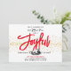 Celebrate the holiday season with this stylish red and white-themed Christmas dinner invitation. Featuring a modern bold red script reading "JOYFUL" as the main centerpiece, this design is set against a glamourous background with white and faux gold confetti. A retro vintage illustration of a turkey on a plate adds a festive charming touch, perfectly capturing the spirit of your holiday gathering. The vibrant red back enhances the invitation's cheerful tone. Personalise the text to suit your event, making it ideal for inviting friends and family to your joyful celebration. Order yours today and make your Christmas dinner unforgettable!