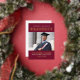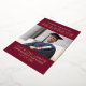 Announce your high school graduate in style with this striking real foil 2 photo graduation announcement card and party invitation. Gold foil and dark red / burgundy card features a modern and masculine typography design with two portraits of your handsome grad. The back of cards include an invitation to a graduation party to celebrate the occasion.