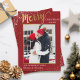 Modern Red Gold Script Merry Christmas Photo Holiday Card