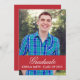 Simple modern graduation photo card announcement and invitation with a red band across the front. Personalise the graduation announcement with your photo, name, and graduation details on the back. To change the font and font colours, click on the "Customise It" button below the product image. There you can also change the background colour on the back of the invitation.
