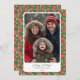 Modern Red & Green Floral Photo Flat Holiday Card