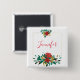 Button with a pretty floral bouquet in red, gold and green colors. A gold frame behind the flowers with your personalized name inside.