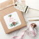 Modern Red Green & Gold Christmas Floral Square Sticker