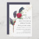 Christian wedding invitation depicts a modern winter, Christmas floral design with a simple red rose and berries, evergreens, grey leaves and festive gold sprinkles. It features inspirational quote from Bible Verse Ephesians 5:31, "Two shall become One." If there is something you don't see or if you would like changes please contact me with the chat button on the Zazzle page.