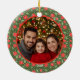 Modern Red & Green Personalised Floral Photo Ceramic Tree Decoration