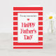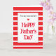 A red modern Father's Day card for son in law. It has a striped red background on the front along with a little red heart. The inside of this modern Happy Father's Day card reads a Father's Day message, which you can easily personalise if you wanted. The back features the striped design along with the red heart with a place for you to personalise with the year. This would make a great keepsake for him.