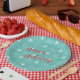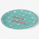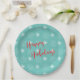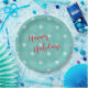 Stylish and modern turquoise with white stars and red Happy Holiday type Paper Plate designed by Inge Lewis. Perfect for Christmas Holiday parties. Find more matching unique products at the ingeinc.com store / boutique.