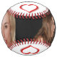 Modern Red Heart 2 Photo Collage Softball for her. Personalise it with 2 photos and names. The text is a trendy black and red typography. You can change any text on the softball or erase it. Great as a gift for mother, daughter or wife.