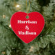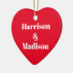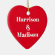 Modern red heart personalised custom couple’s names typography elegant cute Ceramic Ornament.