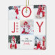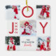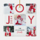 Celebrate the magical and festive holiday season with our custom holiday photo ornaments. Our modern holiday design features a multiple photo chequerboard photo collage style layout that is bold, clean and modern. Red "Joy" displayed in the chequerboard pattern with year and family name. Both sides are repeated with the same design. You can customise the text size, text colour, font and layout for your own personal design preference.