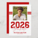 Announce a major milestone with this modern masculine graduation announcement card. Featuring a sleek white background, the front showcases a square photo of the graduate accented by two sporty red stripes running through the background for a bold, athletic feel. A strong “2026 Graduate” title is paired with the graduate’s name and the school, college, or university they attended.