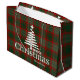 Modern Red Merry Christmas tree script tartan red Large Gift Bag