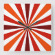 This clock features a fun striped design in shades of red and orange.