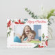 Modern Red Pink Floral Merry Christmas Photo Card