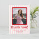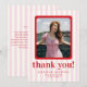 Modern Red & Pink Striped Photo Graduation Thank You Card