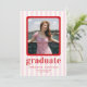 Celebrate in style with our chic and modern graduation party invitation! Featuring playful pink and white stripes as the backdrop, this design is adorned with bold red text for a vibrant and contemporary flair. Perfectly tailored to showcase a cherished photo, it’s a sophisticated way to invite loved ones to join the celebration.