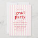 Modern Red & Pink Stripes Photo Graduation Party Invitation