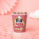 Celebrate your kid's birthday in delicious fun style with a pizza-themed party! This pizza themed birthday paper cup features a colourful illustration of a pizza with toppings that create a festive and inviting atmosphere. The background has been designed to resemble a chequered red and white tablecloth, which is often associated with pizza restaurants. Additionally, playful and funny chef cap custom photo makes this design more fun and inviting. Overall, this a pizza themed birthday design is a unique and creative way to get guests excited about the upcoming celebration.