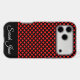 Modern Red Polka Dot Pattern Custom Name Black
