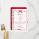 Clean, modern, and effortlessly stylish, this Quinceañera menu features bold red typography, a plain white background and a hand-drawn bow and border for a trendy coquette look. It’s perfect for a fashion-forward guest of honour who values simplicity.